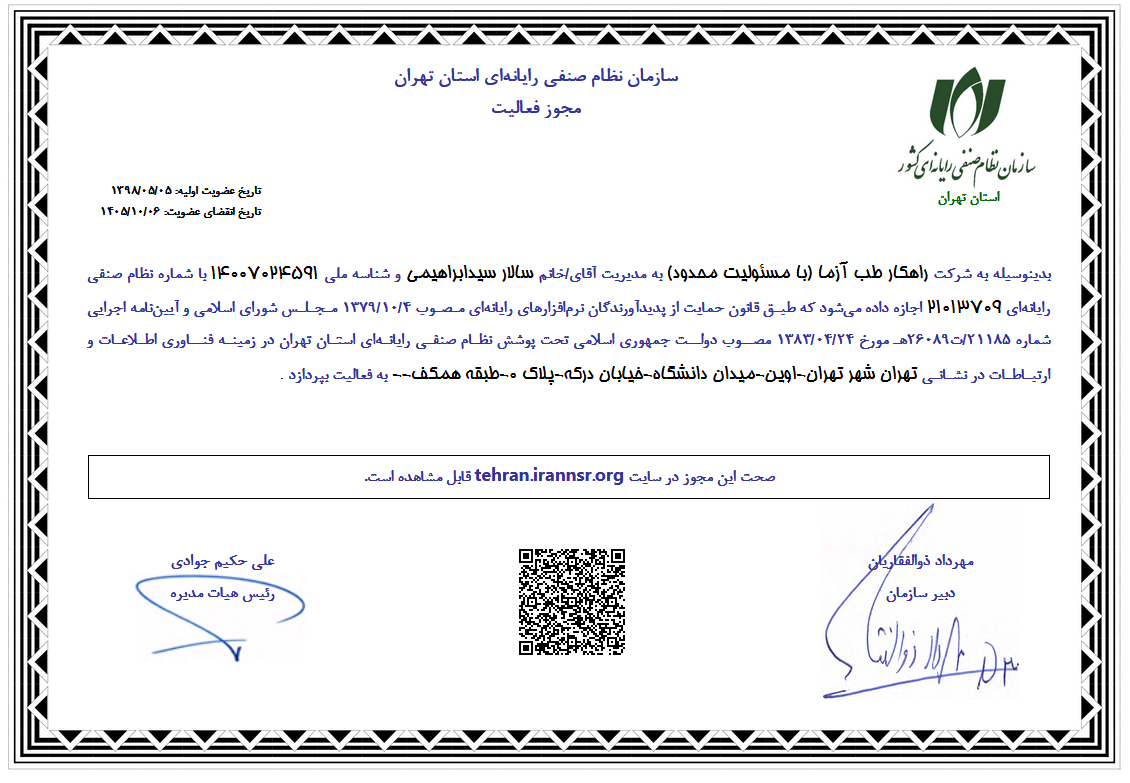 مجوز سازمان نظام صنفی رایانه ای کشور